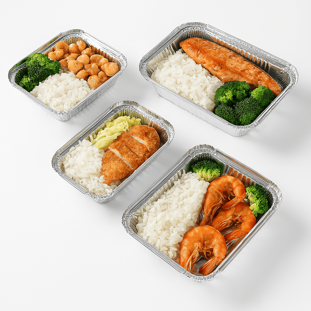 Grilled and roasted dishes like chicken or duck are perfectly packed in aluminum trays, which preserve heat, prevent leaks, and maintain a clean, appealing presentation.